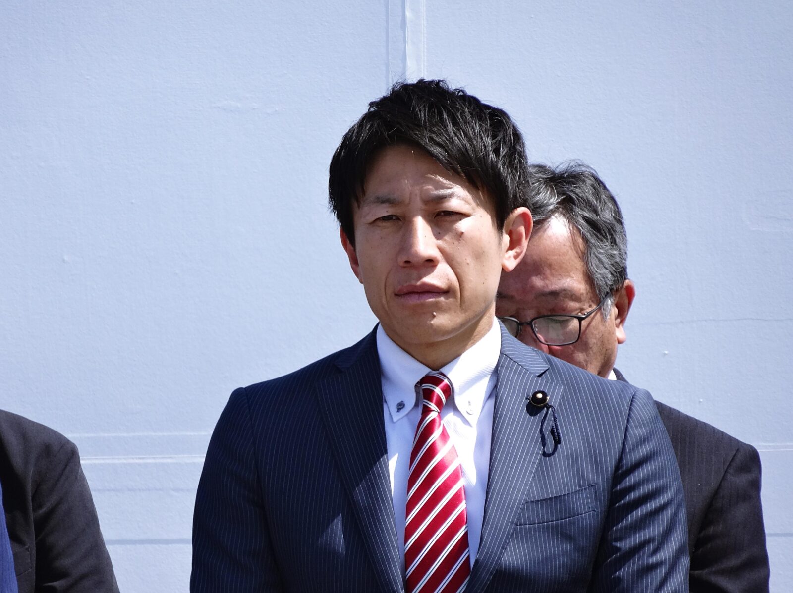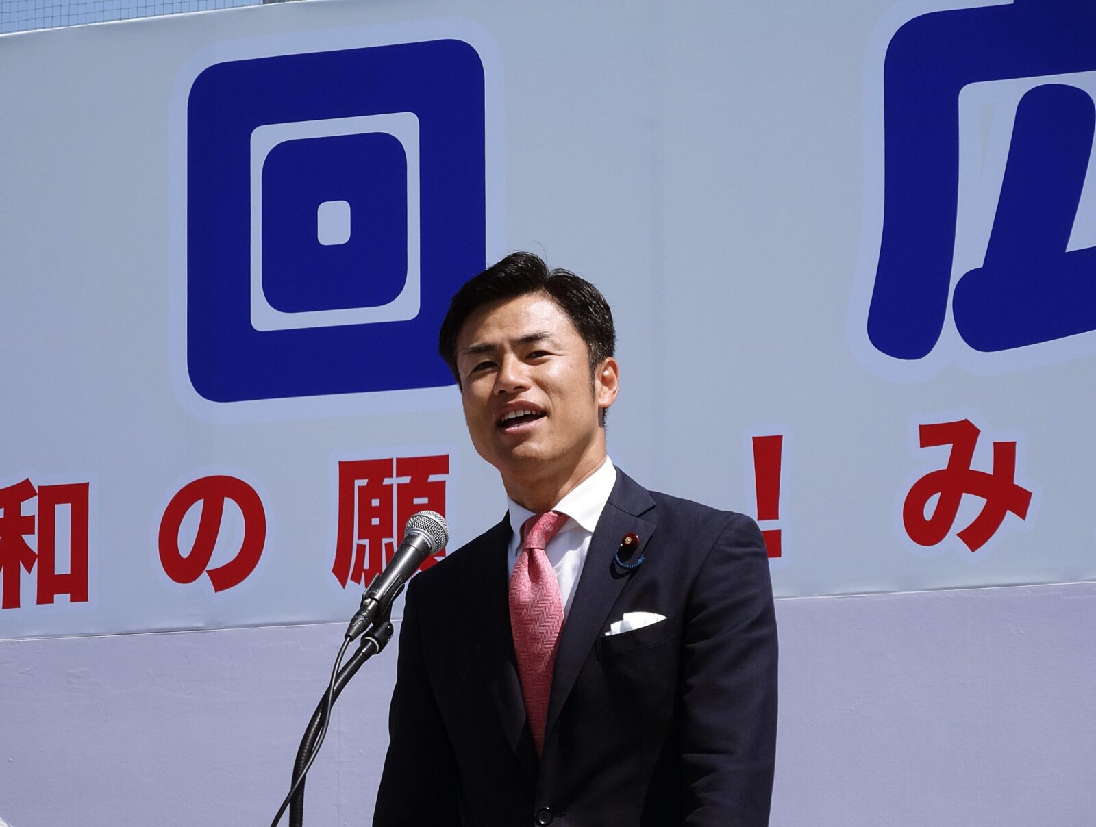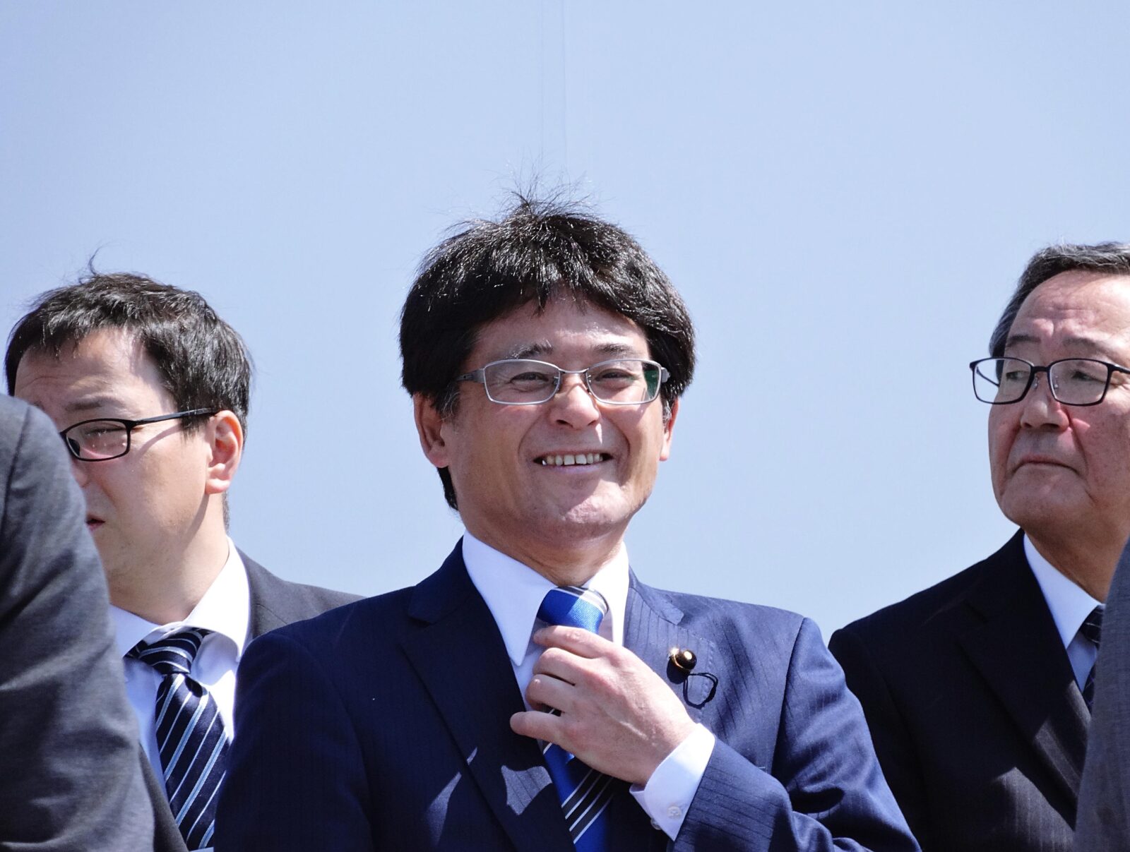 森本 真治 代表代行・参議員、東 克哉 副代表・衆議員、若林 新三 副代表・広島